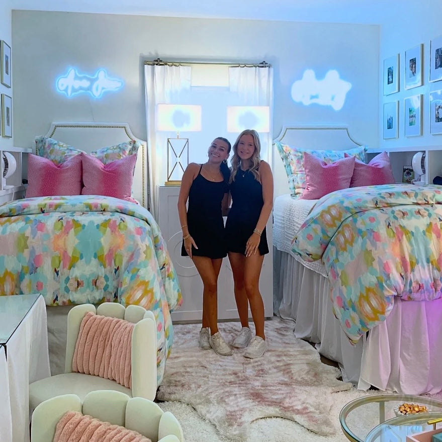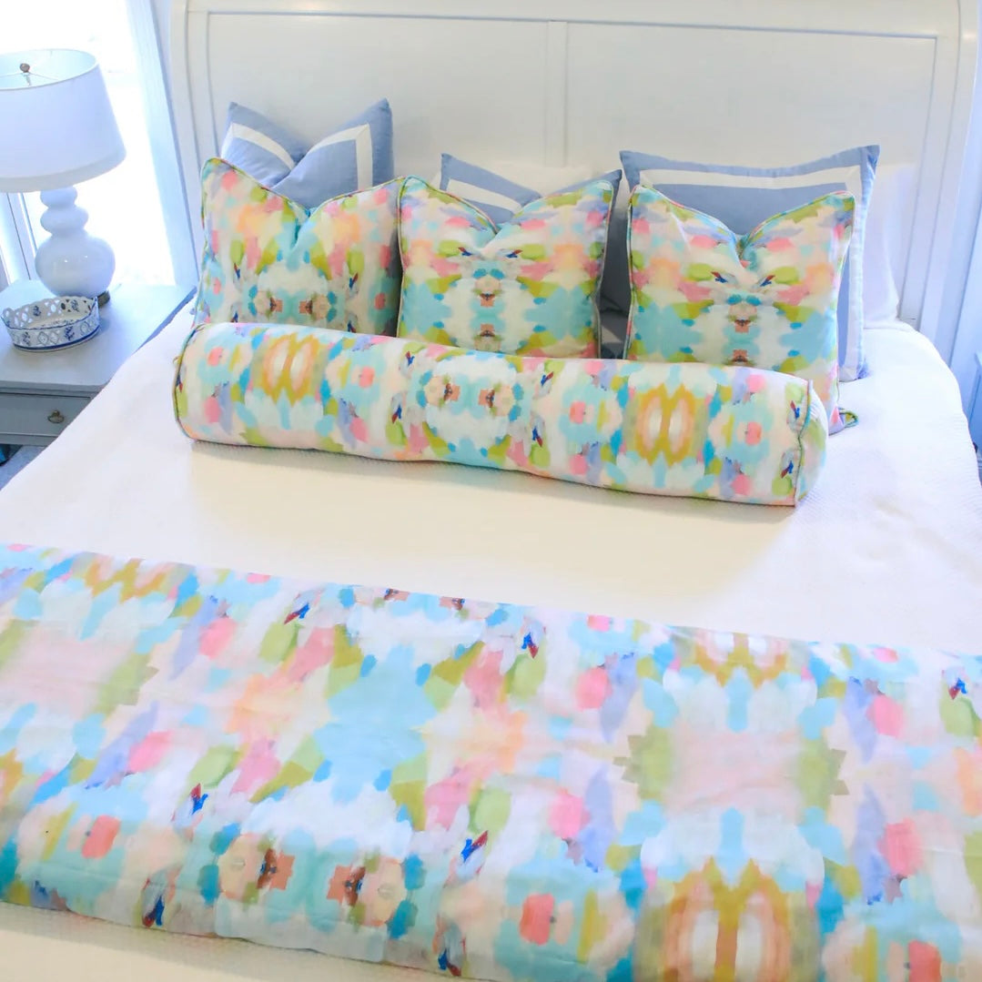 The "Spring Fever" pillow/bedding collection is based from MK's original abstract painting! The colors are absolutely gorgeous! They are joyful, happy, and tie together perfectly with a variety of color palettes and create a beautiful and unique look!